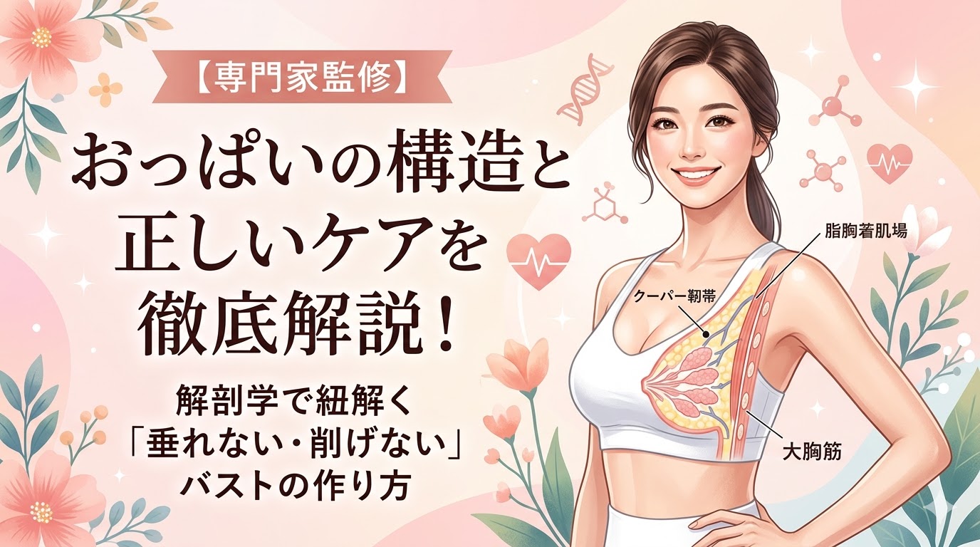 この記事では、のべ2万人以上の女性の身体を見てきた筆者が、医学的・解剖学的な視点から「バストの正体」を徹底解説します。そして、今日から実践できる「クーパー靭帯を守る生活習慣」と「骨格から整える土台ケア」を具体的にお伝えします。